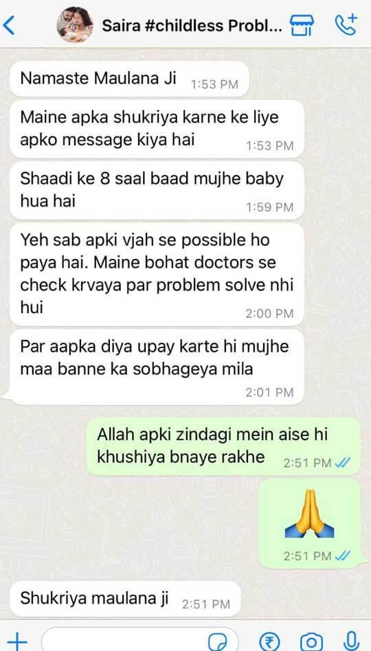 Maulana Usman Ali Khan Ji has helped me to solve health issues. I was unable to know the reason for my deteriorating health. He suggested remedies that I have performed to recover.