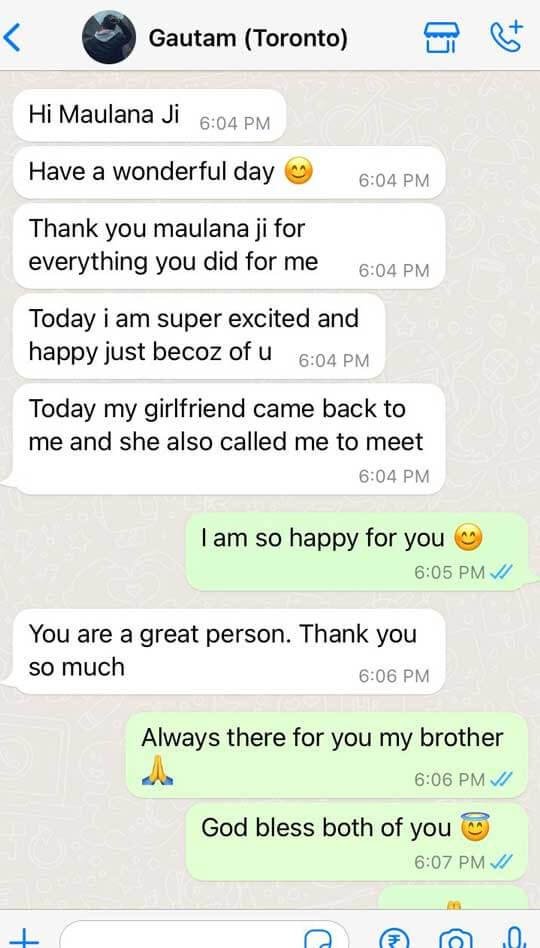 USAI need solution to my love and career. My life was completely disturbing before meeting Maulana Usman Ali Khan Ji. He understands my problem and provides me genuine remedy for my problem.